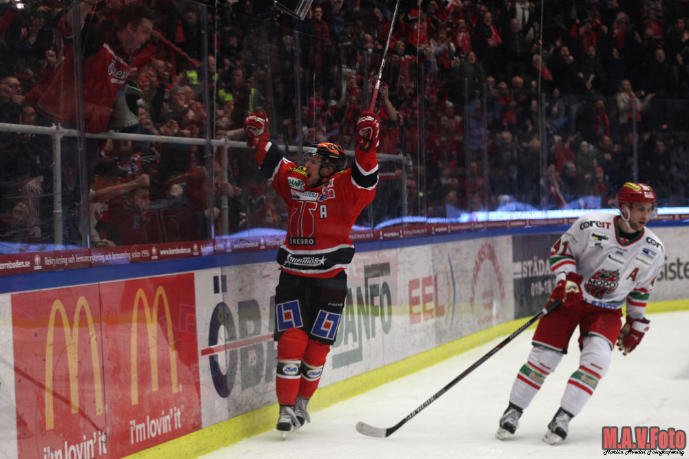 Örebro spelade ikväll sin sista hemmamatch för i år.  För motståndet stod bottenlaget Modo och efter en hård kamp kunde tillslut Örebro vinna med 2-1. Martin Johansson och Anders Eriksson gjorde målen för Örebro, här kommer ett par bilder från matchen.